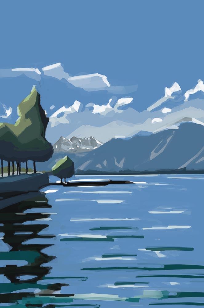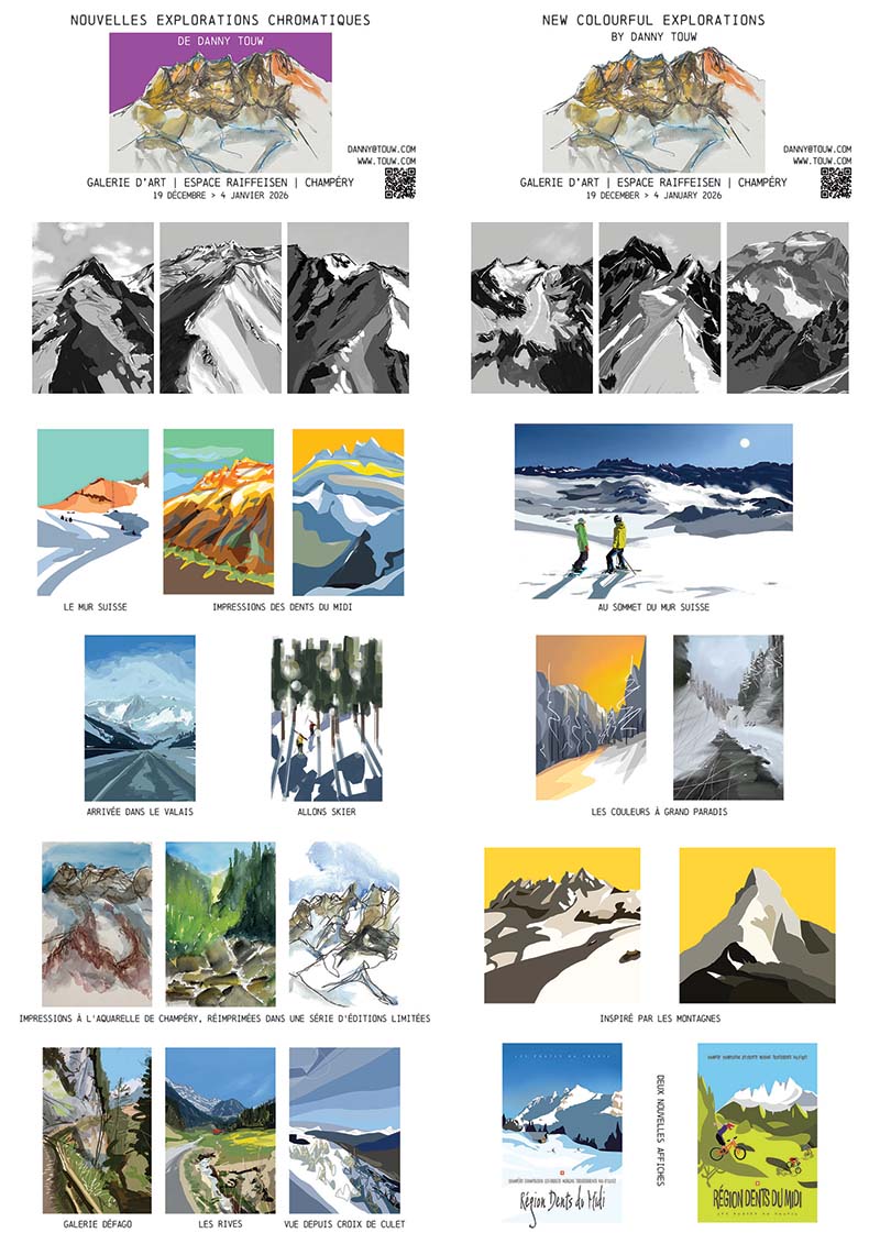 I’ve captured Champéry and its surroundings, ventured into the unique landscape of the Plaine du Rhône, and included a few impressions from Lac Léman. All works are digitally painted and printed in limited editions on high-quality art paper. A few are limited edition prints of original aquarelle works.